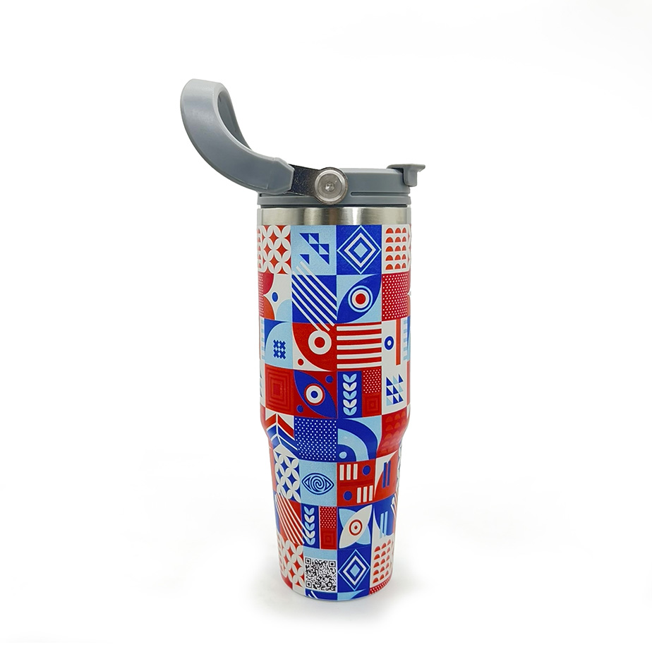 Stainless Steel Insulated Tumbler with 2-in-1 Lid and Straw – (890 ml) – Unique design printing – Food-grade Stainless Steel: Pure taste and no flavor transfer – Double Layer Thermos – Leak Proof – Keep hot drinks for over 7 hours and cold drinks for over 10 hours.